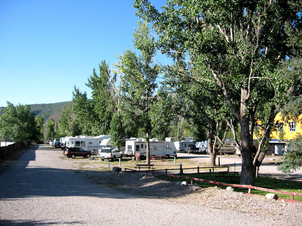 65 Full Hookup, 13 Electric & Water, davon 45 im Schatten, er hat einen Minimarket mit RV Zubehör. Die Sites sind relativ eng und meist aus Schotter. Toiletten, Duschräume und Pool sind sehr sauber.