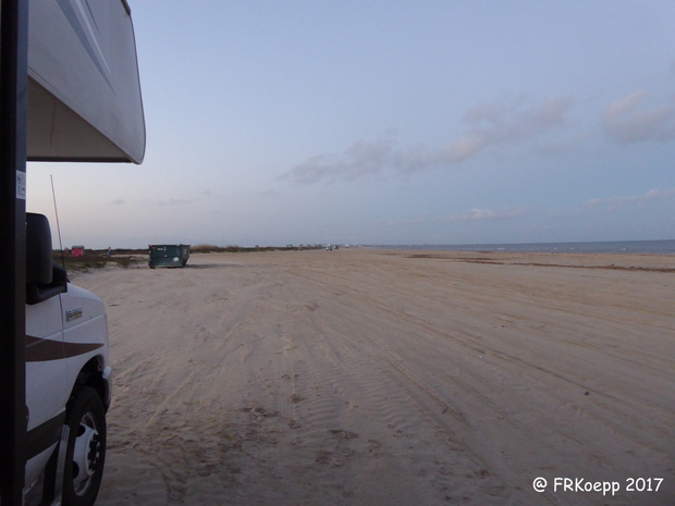 Vom TX-SR-87 kann man rechts den Strand herunter direkt an den Dünen auf Sand stehen. Links von der Einfahrt ist das Übernachten auch möglich, nur hier benötigt man eine Erlaubnis, welche 10 USD kostet.