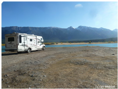 Es handelt sich um eine kostenlose User Maintained Site (public land use zone) direkt am Abraham Lake. Einzigartige Lage, riesige Freifläche auf der man stehen kann, auch am Waldrand und im angrenzenden Wald.