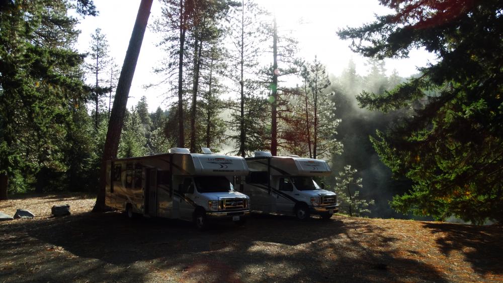 Es ist kein Campground in eigentlichem Sinne, sondern rund um den See sind immer wieder NF-Sites im lichten Wald angelegt, zum Teil auch recht groß, wie bei unserem, aber halt auf rund 10 Miles verteilt.