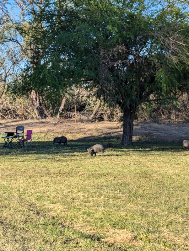 Eine Javelina-Familie lief über den Platz und es machte Spaß sie zu beobachten. Außerdem hat in dem Baum neben uns die Campground-Eule gesessen.