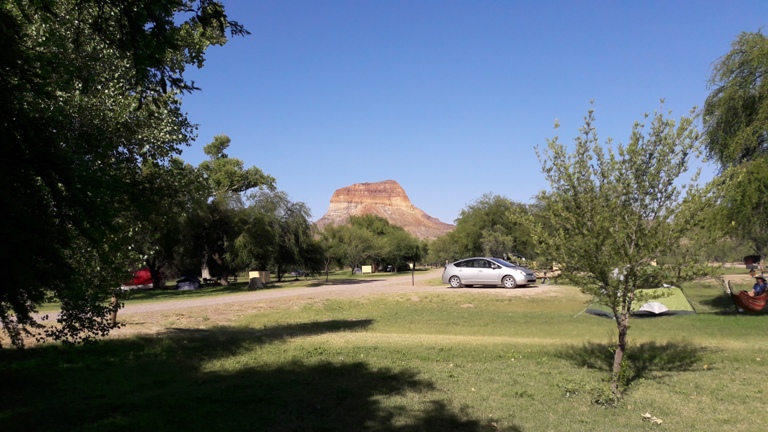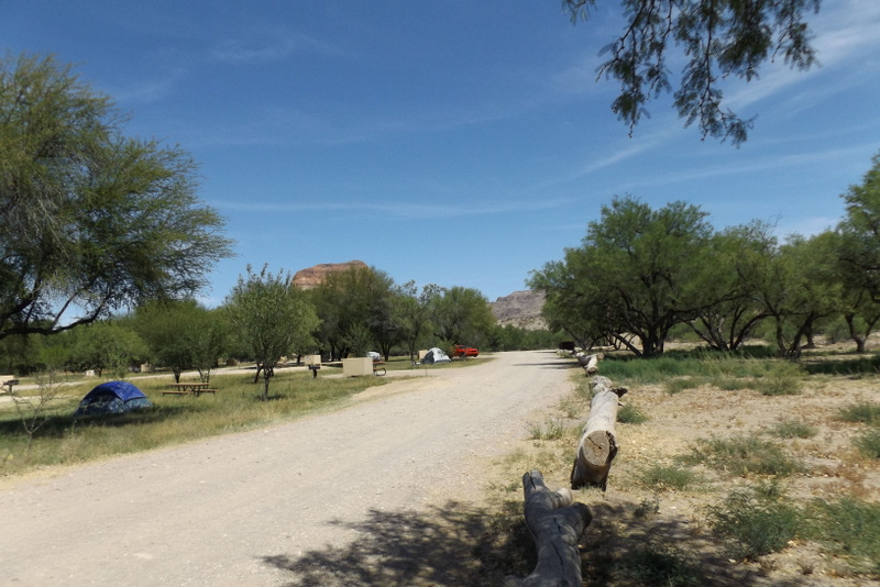 Gute Ausgangspunkt für eine Wanderung in den Santa Elena Canyon, die man sich, wenn man im Big Bend ist, nicht entgehen lassen sollte. Ich habe am 27.3. 2017 hier übernachtet und hatte die Site 3. Die ist zwar nahe des Eingangs, aber die Bäume spenden Schatten.