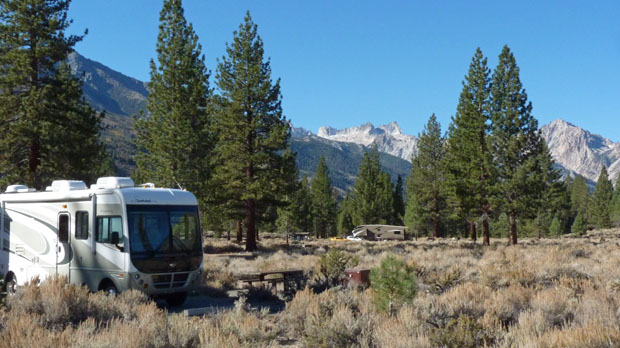 Direction: Zufahrt auf der Hwy-395 von Norden kommend beim Ortseingang von Bridgeport rechts auf der Twin Lakes Road ca. 11mi und dann 1/2 mi links zum CG.