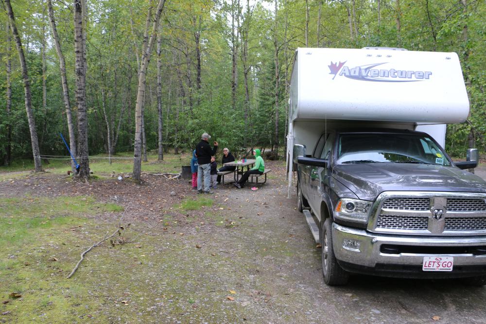 Gratis Feuerholz war vorhanden, jedoch musste man von unserem Site sehr weit zum Holzvorrat laufen, im Gegensatz zun den CG's im Yukon keine Feuerholzunterstände und auch nicht zugesägt, daher ein Feuer Abzug.