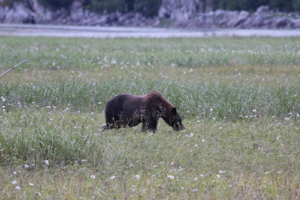 Am Abend konnten wir bei einer "Pirschfahrt" auf dem Delta mehrere Grizzlies beim Gras fressen und drei "Halbstarken" beim Herumtrollen und bei Fischfangtraining zusehen.