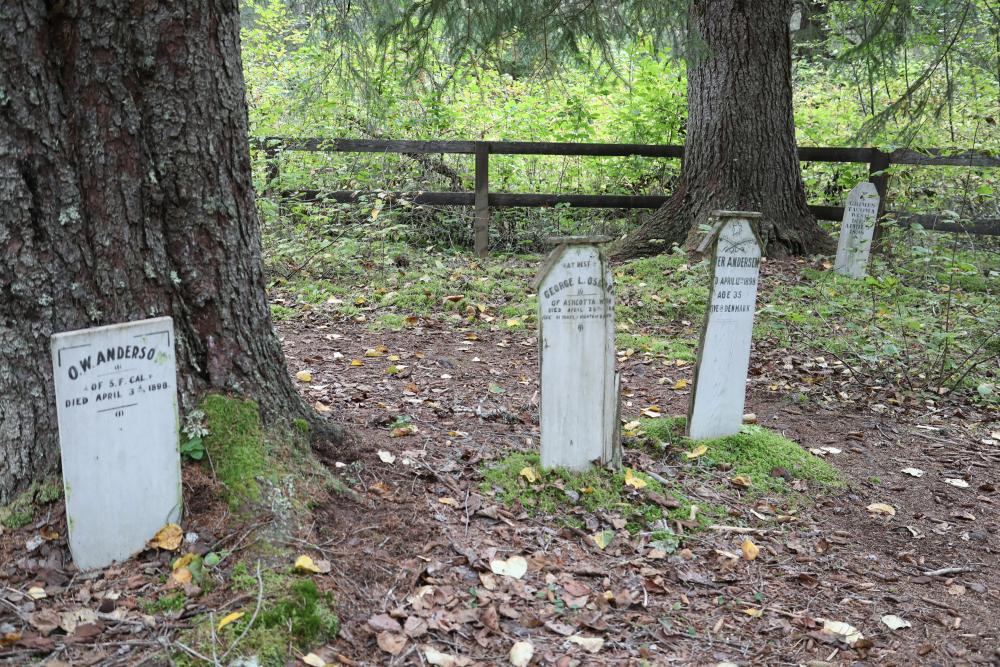 Am nächsten Morgen hatten wir noch Zeit und fuhren zu den Dyea Flats (frühere Anlandestelle für die Schiffe der Goldsucher). Die Historic Town konnte nur als geführte Tour besucht werden, dafür hatten wir zu wenig Zeit. Sehr eindrucksvoll fanden wir den Besuch des kleinen Friedhofs (slide cemetry), auf dem u.a. viele Opfer eines mächtigen Lawinenunglücks im Jahr 1898 begraben liegen.