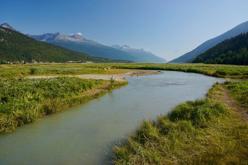Nach etwas mehr als 2 km auf der Dyea Rd. kommt auf der linken Seite ein Viewpoint an dem man nicht vorbeifahren sollte, denn sonst hat man diese Aussicht versäumt.