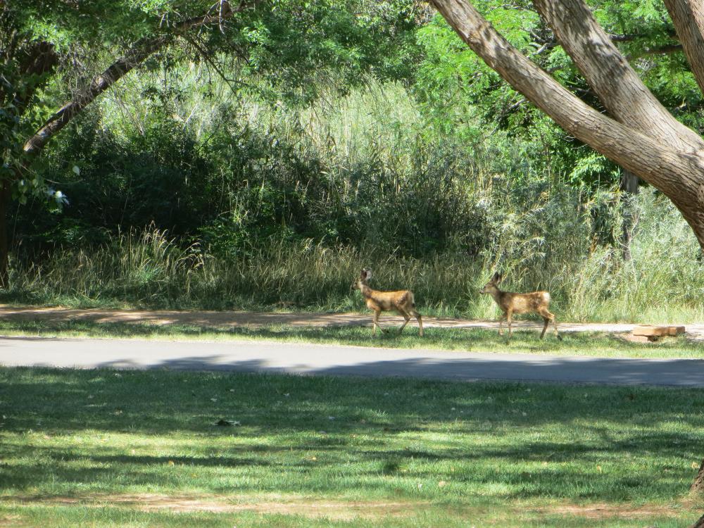 Auch hier hat es uns gut gefallen, wirklich eine grüne Oase. Das ganze Grün will allerdings auch gepflegt sein und so wurde nachmittags gesprengt und gemäht, was das Naturgefühl irgendwie kaputt gemacht hat. Den Rehen wars egal, von uns 4 Feuerchen.
