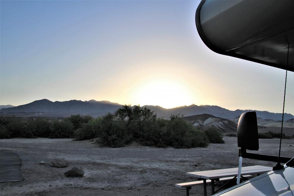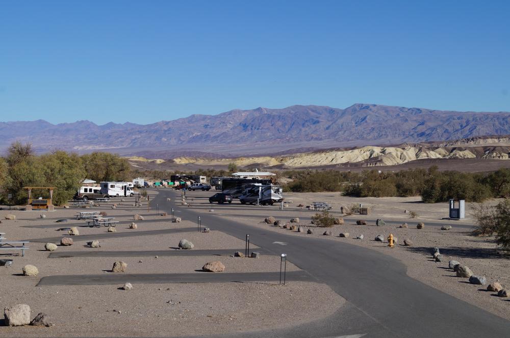 Zu unserer Reisezeit hat es nachts soweit abgekühlt, dass wir keinen Strom für eine Klimaanlage benötigt haben. Daher war es für uns auch kein Problem, dass bereits alle E-Plätze belegt waren. Der Platz liegt für viele klassische Death Valley Sehenswürdigkeiten (Dantes View, Zabriskie Point, Badwater Basin etc.) sehr günstig und bietet eigentlich auch einen ganz schönen Blick ins Valley.