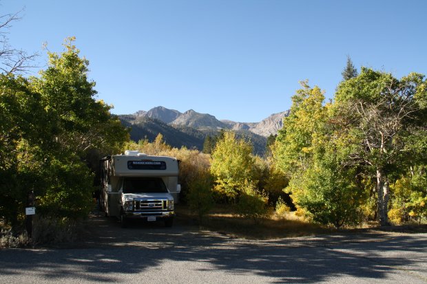 Ein schöner und gemütlicher kleiner Campground direkt am idyllischen June Lake - bei der kleinen Marina kann man Kajaks und Motorboote mieten. Auch den Ort erreicht man in wenigen Minuten zu Fuß. Wir haben hier 2 entspannte Tage inmitten bunter Herbstblätter verbracht. Toilettenhäuschen haben wir nicht aufgesucht, bei der Marina gäbe es warme Duschen, die wir jedoch auch nicht genutzt haben.