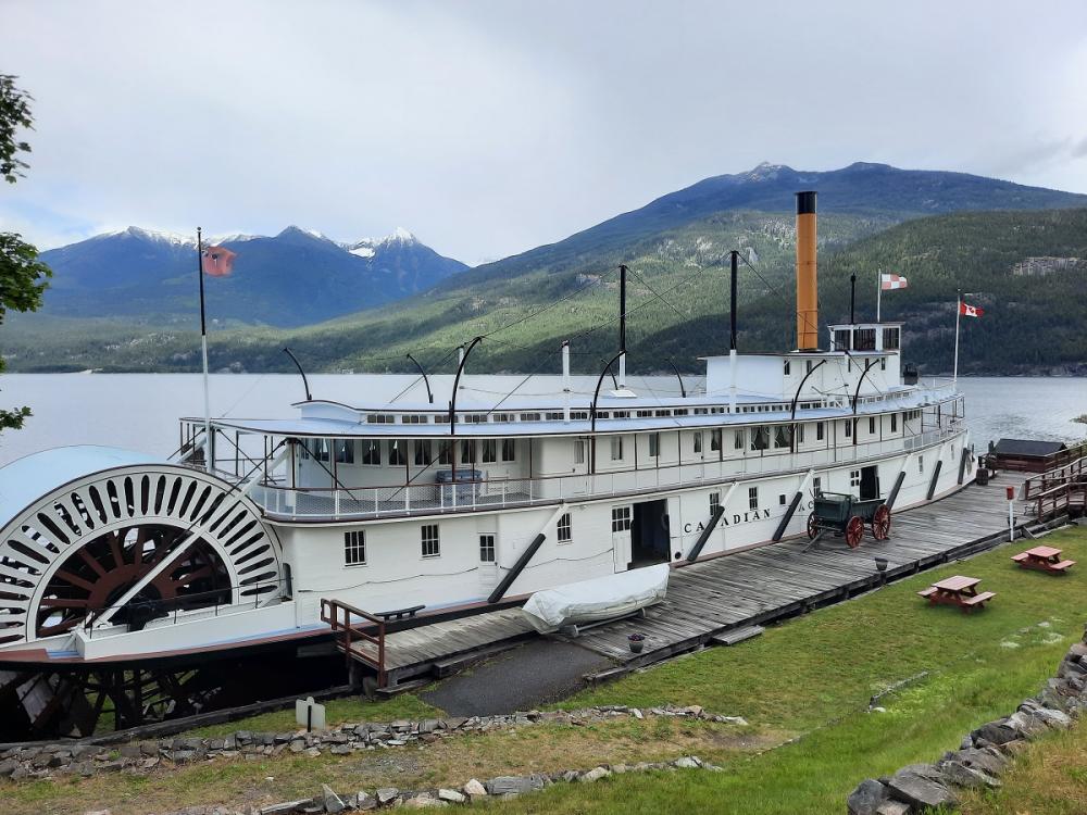 Es gibt auch Full Hookup Dumping kostet extra. Reserviert haben wir nicht, es war auch noch genügend frei. Die Nähe zur Stadt ist schon super: es gibt ein paar kleine Lokale und ein Hotelrestaurant, das haben wir auch genutzt. In Kaslo selber kann man einen Raddampfer und Eisenbahnmuseum besichtigen. Dort ist auch gleich ein Visitor Center.
