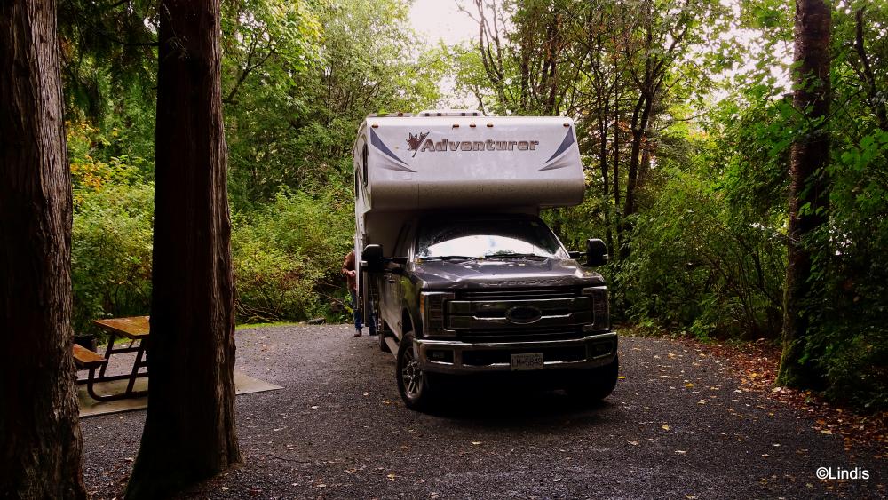 Etwas abgelegen einer von 3 Campgrounds im Provincial Park am Deer Lake, sehr ruhig. Schöne Sites im Wald, sehr große, hohe Bäume, Regenwald, schattig.