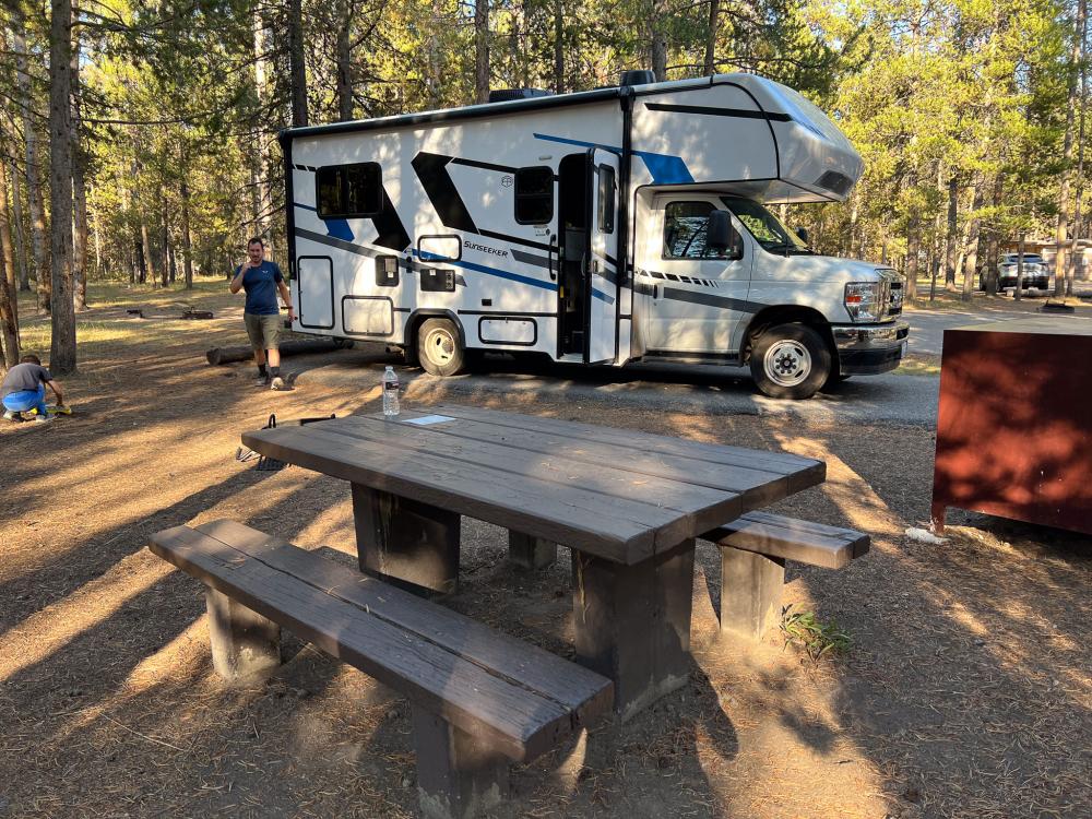 Wir standen hier Ende August 2025 für 2 Nächte. Beim Check In wurde uns Site B51 zugewiesen. Die liegt ganz am hinteren Ende des Loops. So hatten wir viel Platz zum Spielen und auch viel Abstand zu den Nachbarn. Zum Madison River war der Weg natürlich etwas weiter. Von der Straße, die von West Yellowstone in den Park führt, haben wir abends/nachts nichts mitbekommen. Beim Sitzen am Lagerfeuer kam einmal ein Fuchs oder Coyote hinter uns durchgehuscht.