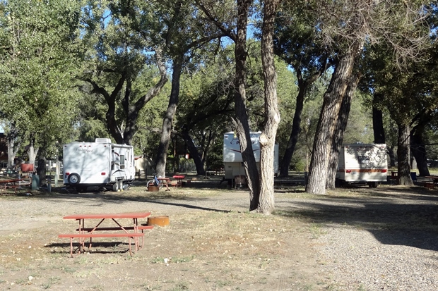 Für einen KOA großzügige Stellplätze unter hohen Bäumen mit Sonne und Schatten. Full Hook-up, Laundry, Pool, WiFi. Etwas mehr Pflege würde dem Platz guttun.