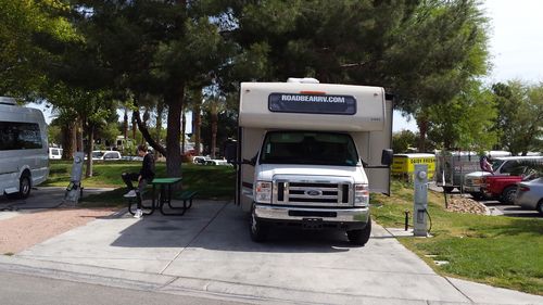 Es ist eigentlich alles gesagt: großer Platz, große Lobby, Sanitärräume sehr sauber. Swimming Pool usw. haben wir nicht genutzt. Wir hatten die Site # 1, gleich am Eingang. Die Bäume spenden etwas Schatten, was im Hochsommer sicherlich von Vorteil ist. Der Verkehr am Eingang hat uns weniger gestört. Eher schon die Verkehrsgeräusche von der I - 15. Aber dafür liegt der Campground sehr zentral. Zum Strip haben wir ein Taxi genommen. Fahrpreis inkl. Tip ca. 30 USD.