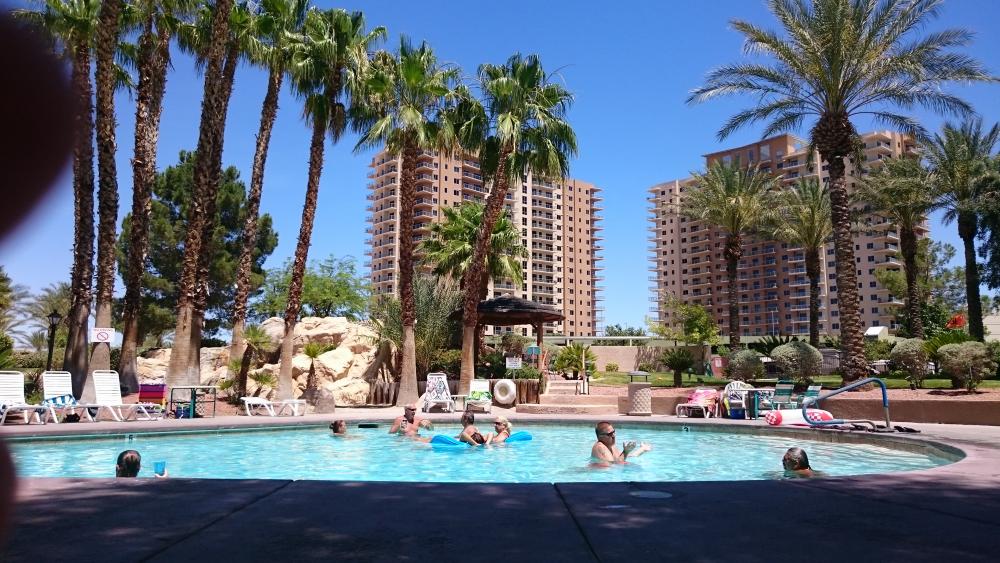 Auf unserer Reise mit Baby 2015 besucht. Vor und nach Campingplätzen in der Natur war es ganz nett, mal in einem komfortablen resort zu sein. Wir sind am Abend der Ankunft zum Strip gefahren. Die Rezeption ist bei Taxibestellung behilflich. Baby haben wir ausnahmsweise ohne Sitz mitgenommen (mit Baby-Tage), anders wären wir nicht hingekommen. Am nächsten Tag tagsüber haben wir dann einfach am Pool entspannt, auch das Baby mal mit ins Wasser genommen (knapp 10 Monate), und Wäsche gewaschen. Alles, auch Sanitäranlagen, sehr schön und sauber.