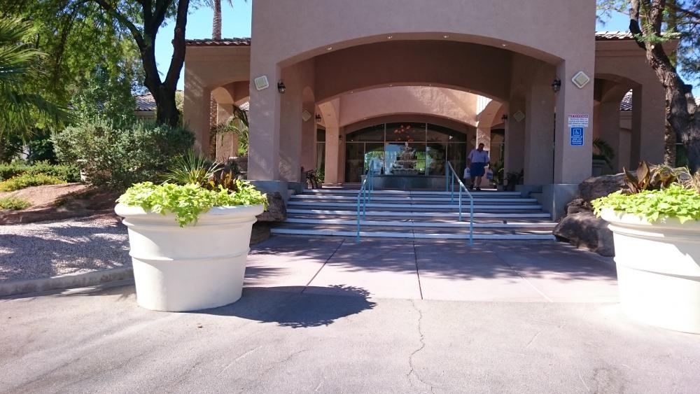 Großer Platz mit viel Beton, aber sehr gepflegt. 2 Pools (super bei 115°F), große Empfangshalle mit Bar und Shop für alles Mögliche. 20 Minuten per Taxi zum Strip. Ist nicht billig (47 USD mit Rabatt), aber für eine Nacht es lohnt sich. Die Waschräume sind sehr sauber.