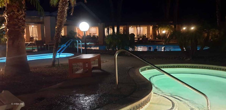 Dieser Campground hat ein mit dem Caliente Springs Campground vergleichbares Angebot, ist aber gefühlt um einiges größer, akzeptiert auch den Passport America (52/26$) und ist nicht auf die Oldies 55+ beschränkt. Er ist unwesentlich günstiger als der Caliente Springs, er kostet (in 2023) regulär 55-78, mit Passport Amerika 27,5-39 USD