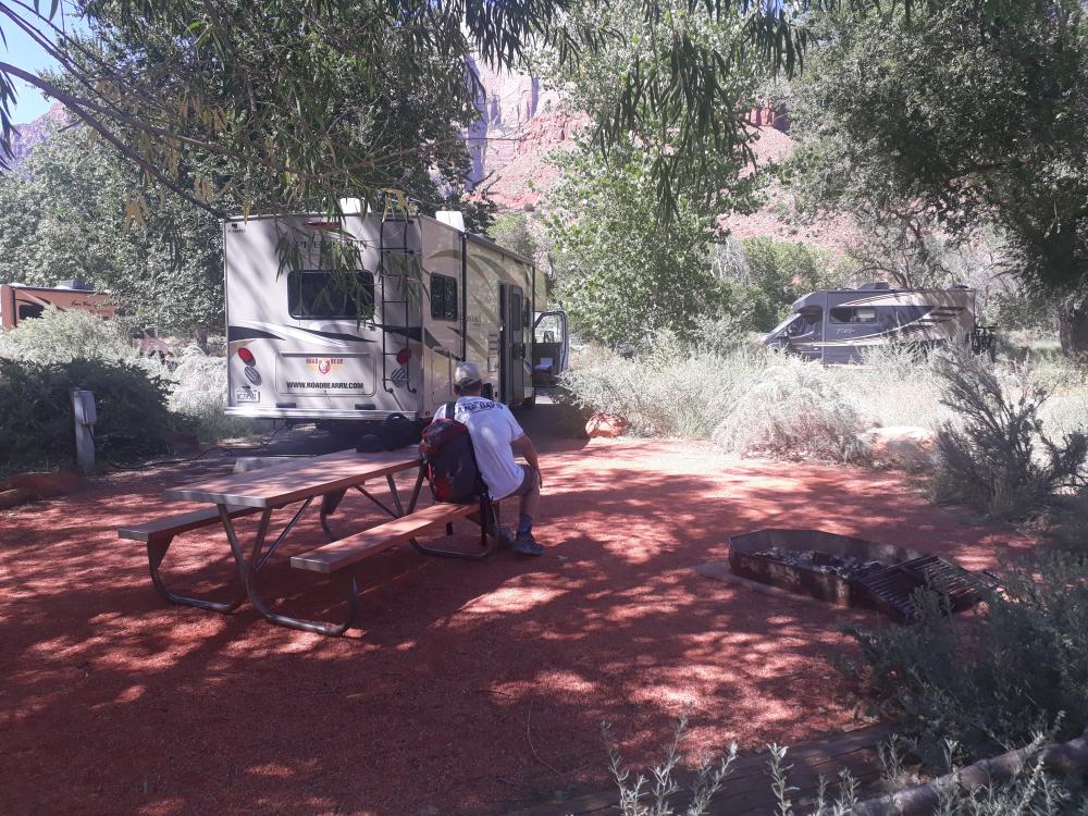 Wir standen hier für zwei Nächte im September 2019 auf der River-Site 13 im A-Loop, übrigens der Lieblingsloop der Rangerin :) , die uns eincheckte und unfassbar lieb und begeistert war, ein tolles Willkommen! Die Site war großzügig und der nicht vorhandene Schatten auf der Site fiel aufgrund des E-Hookup nicht ins Gewicht. Die Klohäuschen waren sauber und der Virgin River zwar nicht in direkter Sicht- jedoch in "Hüpf"weite. Besonders begeistert hat uns die wohltuende Geruhsamkeit auf dem CG nach dem Trubel des NP, eine ganz eigene Welt.