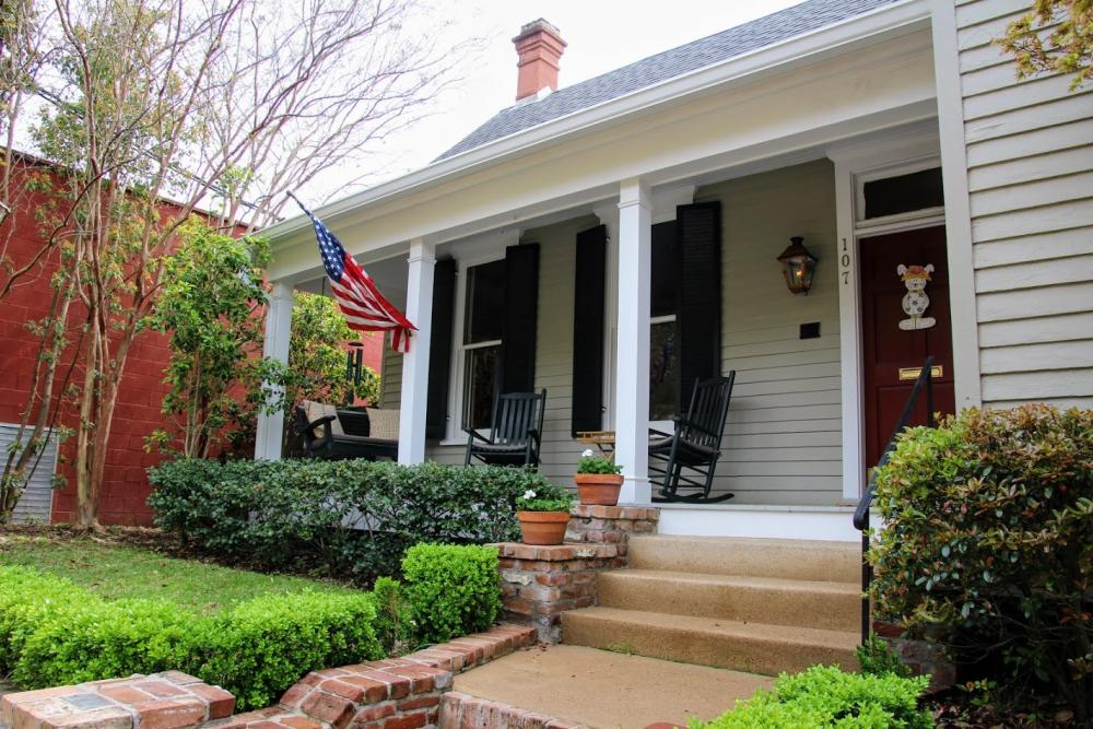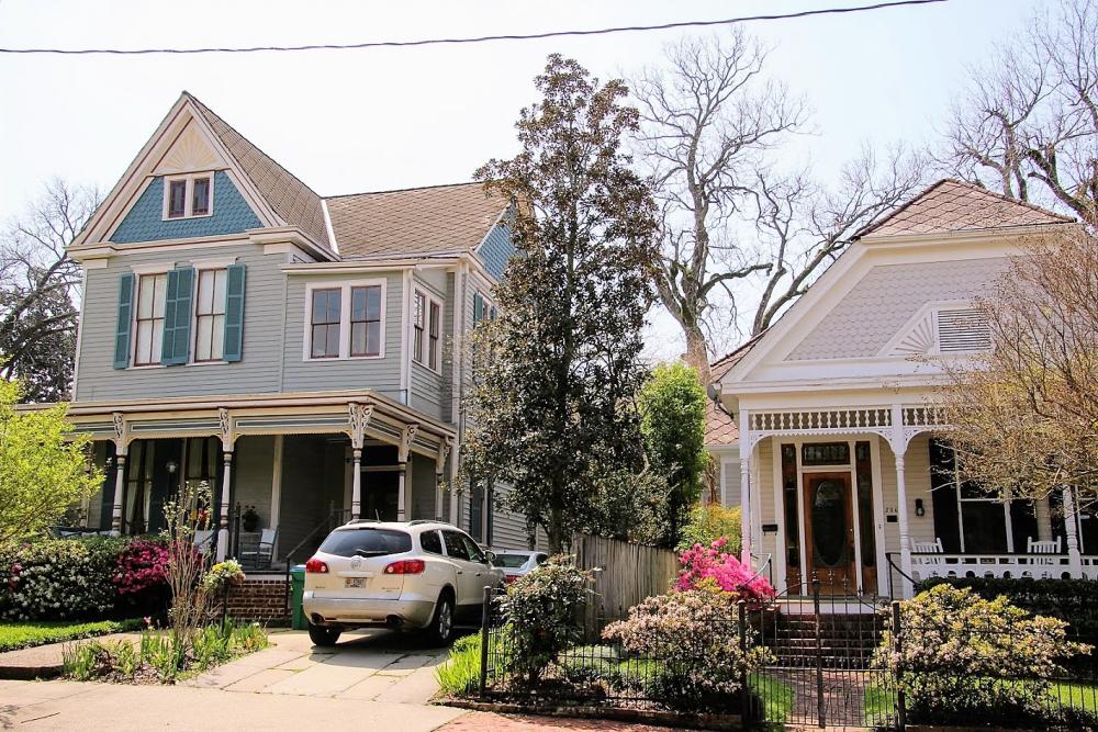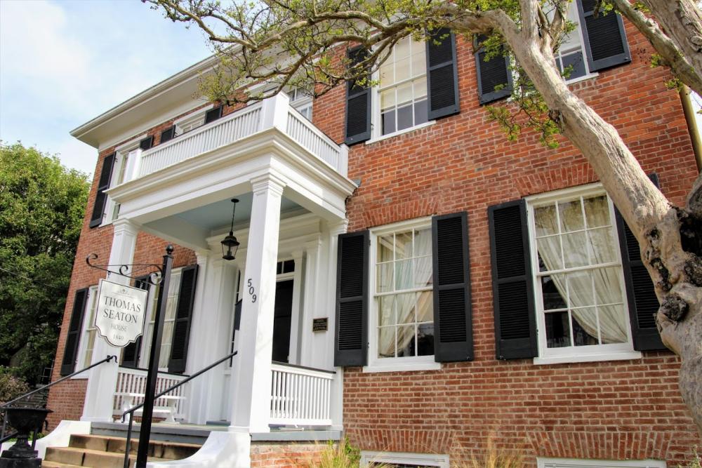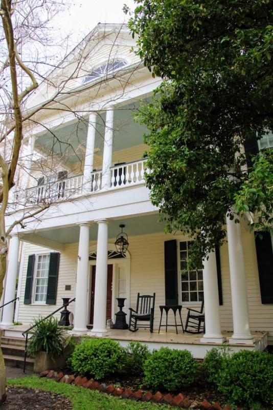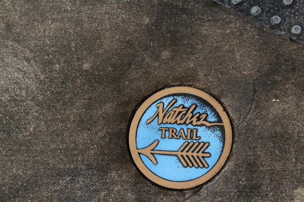 Nun fahren wir zurück nach Natchez, um uns den historischen Stadtkern anzusehen. Es ist nicht weit und wir finden in der Washington Street am Straßenrand einen Parkplatz. Auf dem Fußweg sind blaue Pfeile, die uns durch das historische Viertel führen. Es gibt auch noch eine Runde mit braunen Pfeilen.