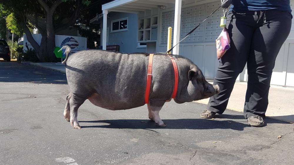 Trotzdem lädt sie uns ein, eine Runde mit dem Schwein zu knuddeln. Ich finde Hängebauchschweine super - wir Mädels sind schon ein bisschen aus dem Häuschen, einmal kurz streicheln reicht uns dann aber doch