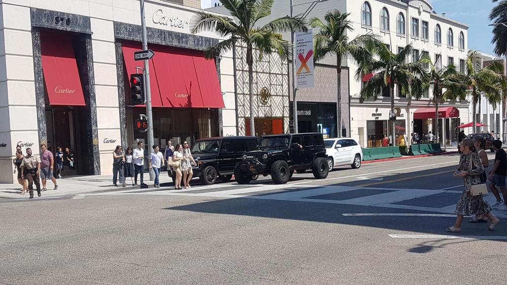 ) Hier reiht sich eine Luxus Boutique an die nächste, teure Sportwagen fahren auf und ab - wir sind begeistert. Uns ist bewusst, dass dieser Abschnitt nicht den überwiegenden Teil der Bevölkerung LA's wiederspiegelt. Wir fühlen uns hier jedoch viel wohler als am WOF und genießen die Aussicht auf die großen und kleinen Dinge außerhalb unserer finanziellen Reichweite ![]()