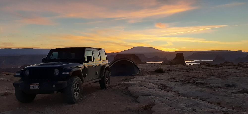 Nachdem wir ein letztes mal unseren Blick über den Lake Powell schweifen haben lassen verkrümeln wir uns ins Zelt.