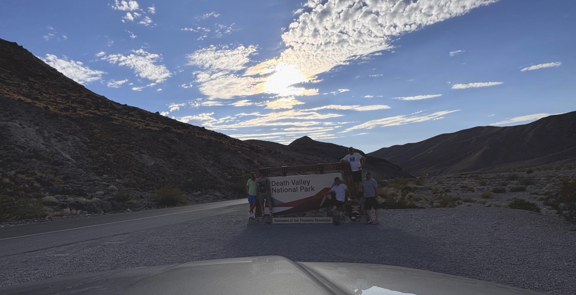 Die Koffer wurden ausgepackt und mit dem Strolch ging es dann weiter hoch zu Dantes View! Am Death Valley Sign noch eben ein Foto gemacht, müssen wir morgen aber wiederholen, das Gegenlicht passt nicht so gut