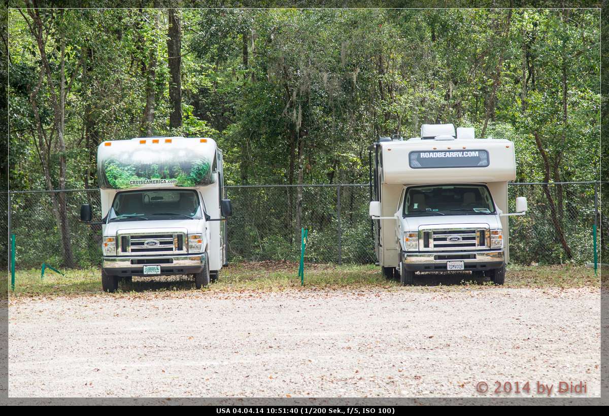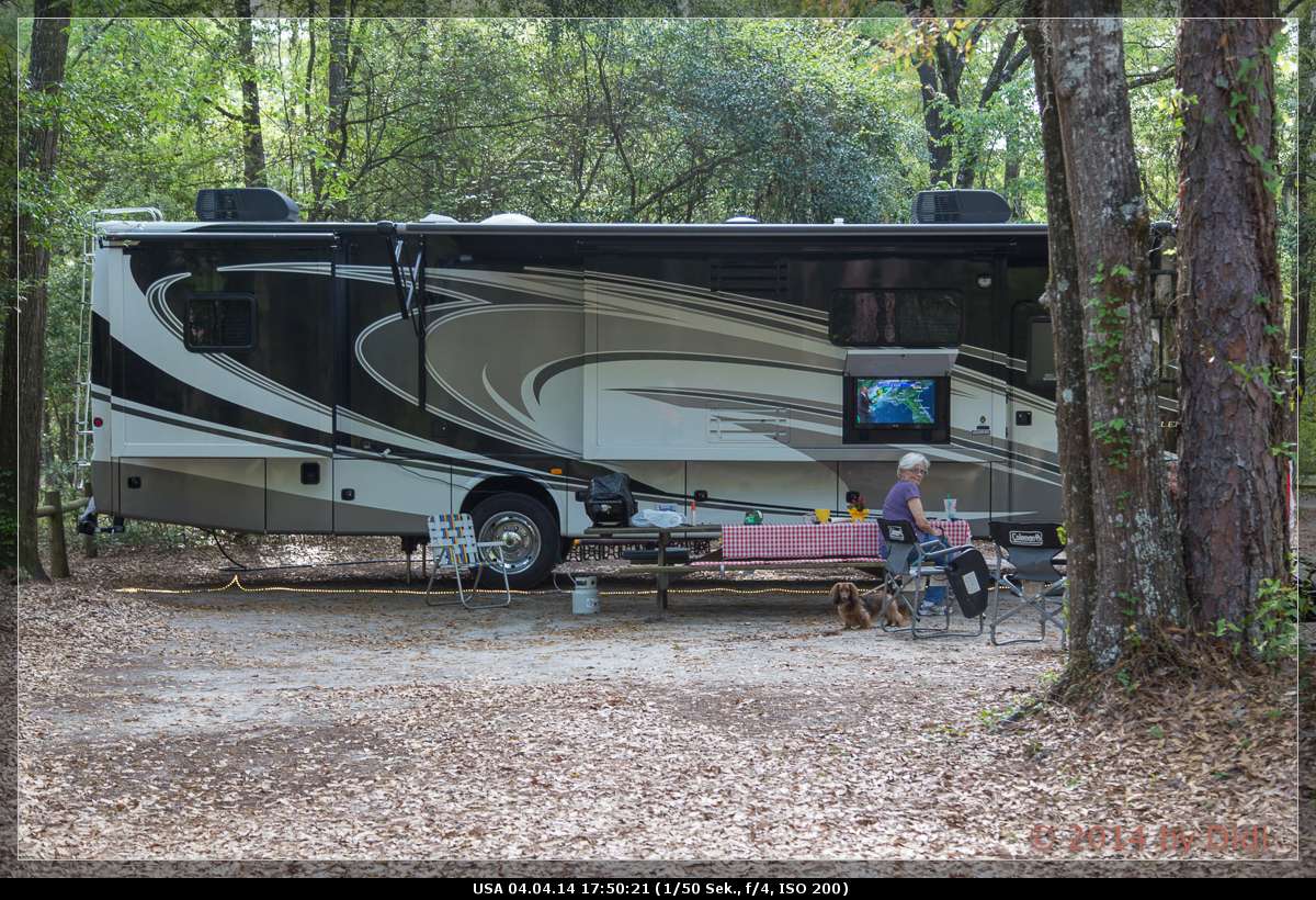 Heute ist doch nochmal ein längerer Fahrtag angesagt, allerdings mit einer längeren Unterbrechung am Mittag. Gegen 11 Uhr treffen wir im Wakulla State Park ein und holen uns Tickets für dir nächst mögliche Bootstour um 11.40 Uhr. Dort treffen wir ein deutsches Ehepaar, das mit dem noch kleineren C19 von Cruise America 6 Wochen durch die USA fahren. Vielleicht trifft man sich ja auch mal hier im Forum(?)