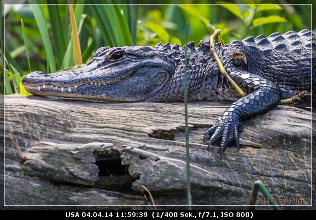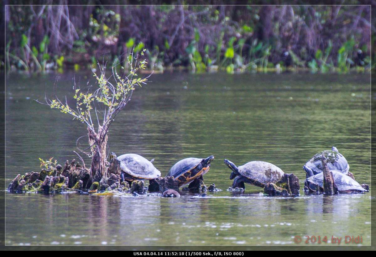 Hier gibt es wieder viele Vogelarten, Schildkröten, (nur) eine Schlange, dafür aber viele - na was wohl? Ja, klar! - Alligatoren.