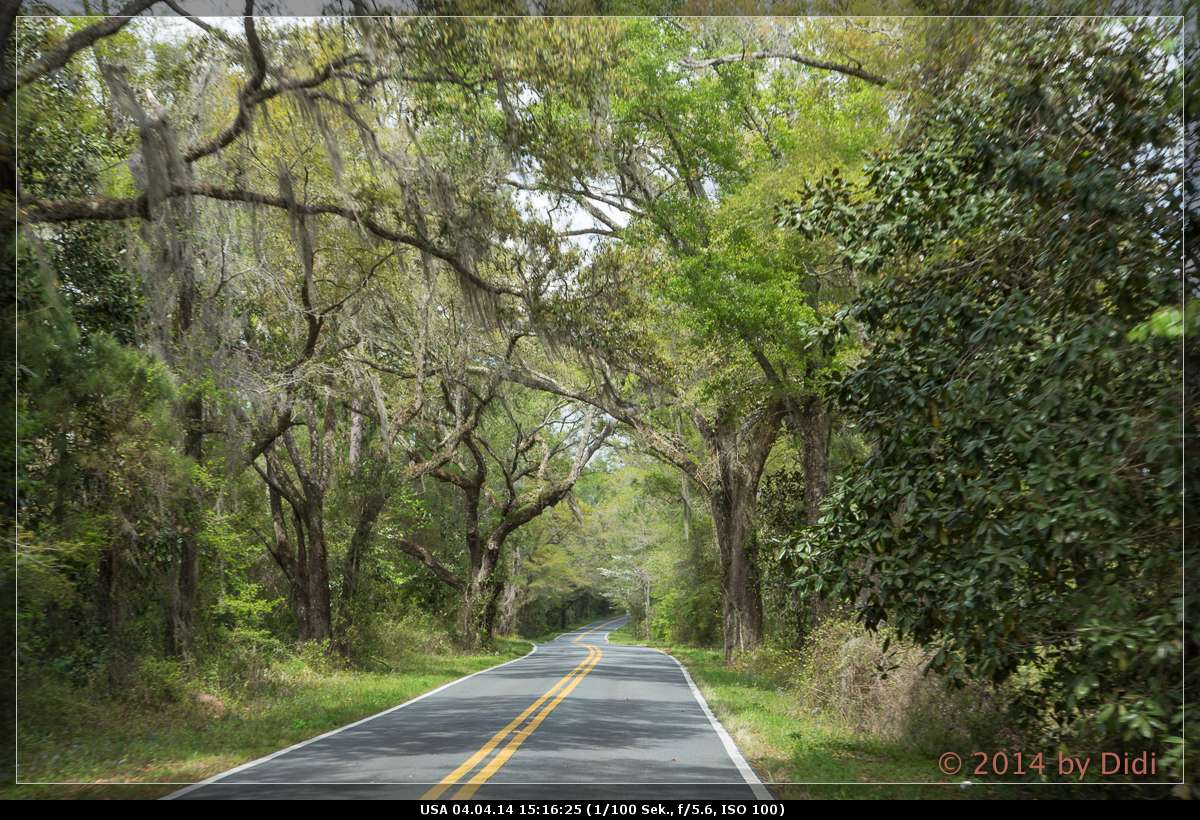 Danach streifen wir Tallahassee, kaufen noch ein paar Kleinigkeiten in einem Winn Dixie und zockeln weiter über die Miccosukee Road - eine schöne von Bäumen überdachte Landstraße ("gemopst" aus dem Reisebericht von Gabi - die Magnolia Road haben wir allerdings nicht gefunden).