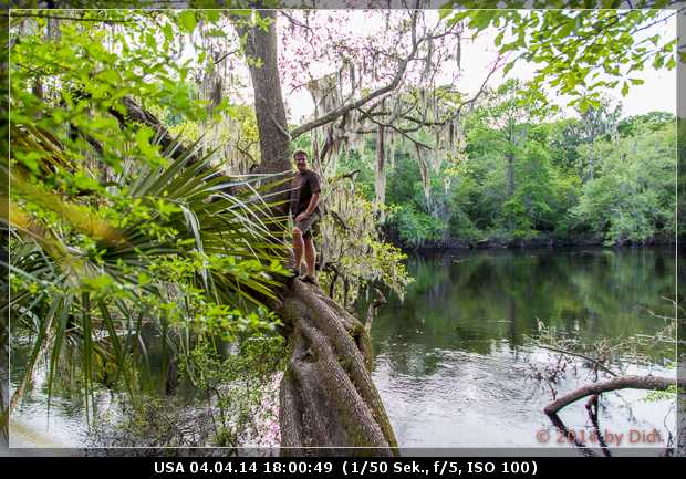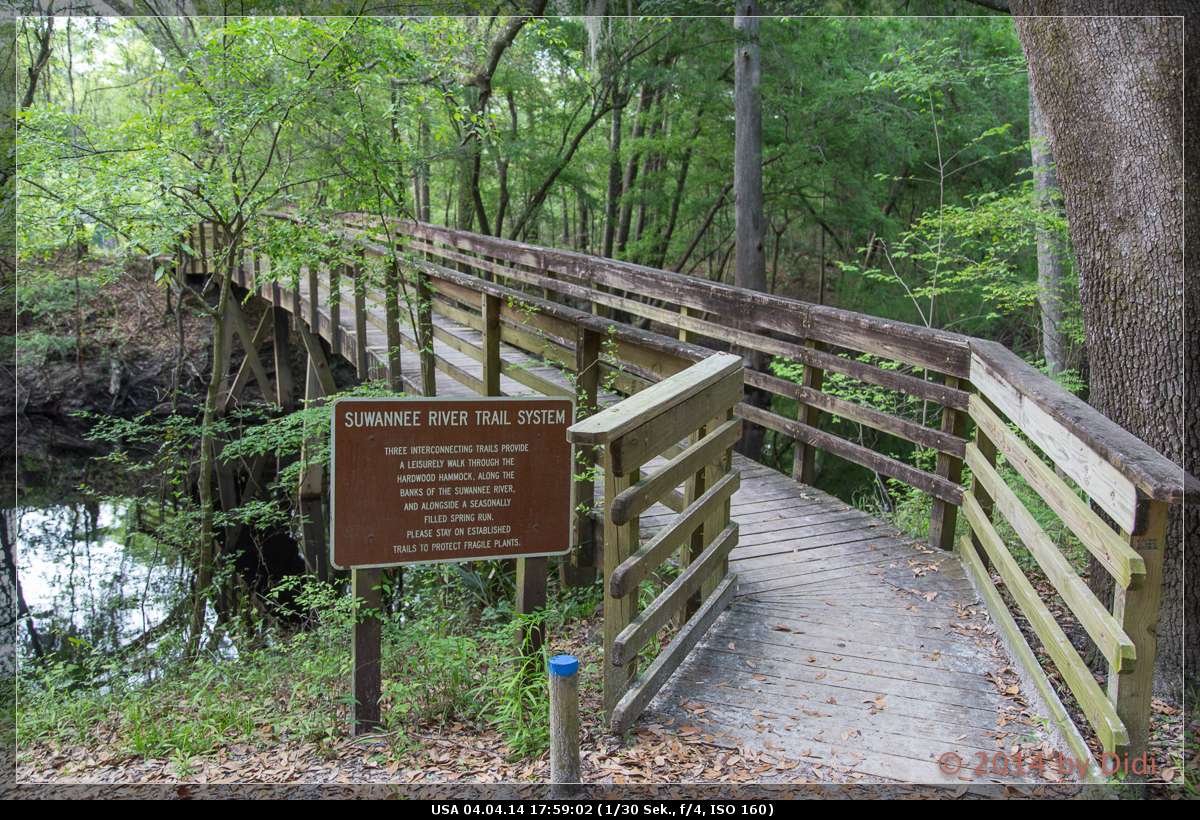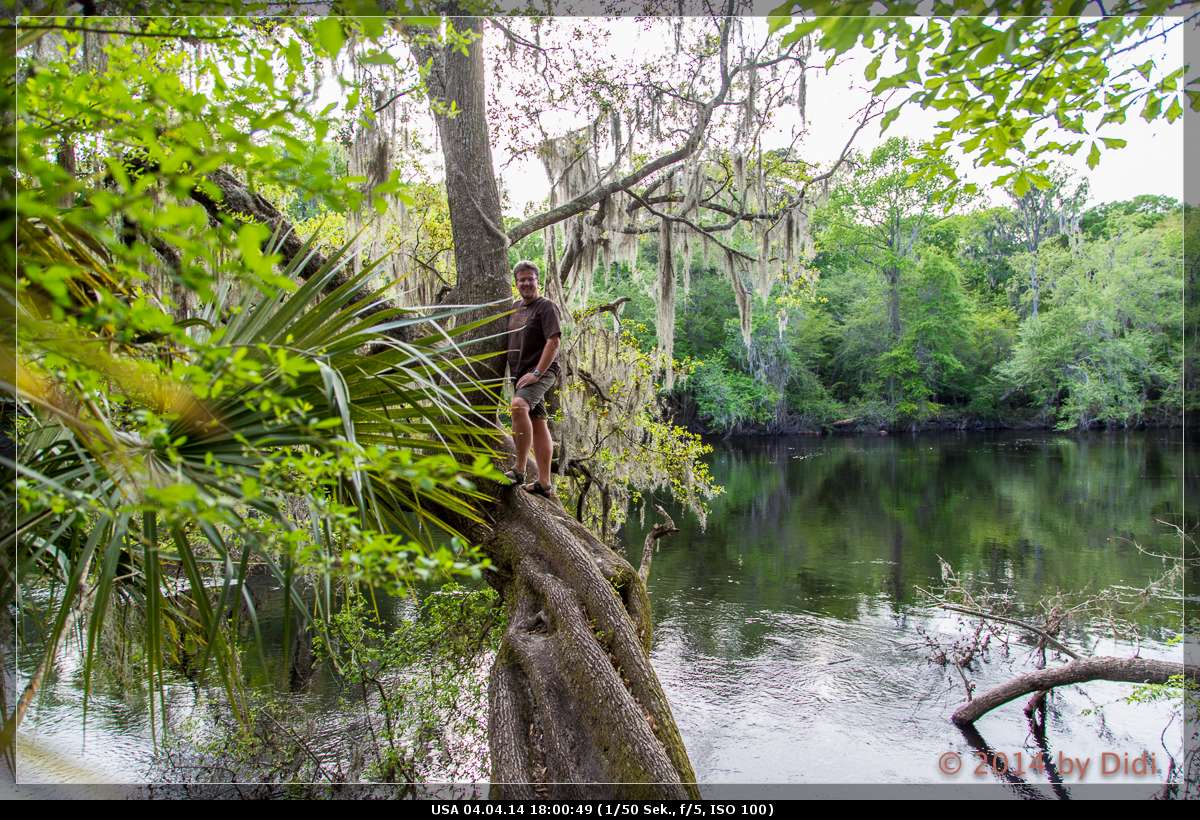 Dann geht es weiter auf der US 90 bis zum Suwannee River State Park, wo wir dank Dietmars neuem Hotspot von AT&T, den er sich bei unserem Zwischenstopp in Tallahassee besorgt hat, richtig guten Internet-Empfang haben. Das nutzen wir auch dann gleich erstmals, machen uns aber dann noch auf und laufen den Suwannee River Trail.