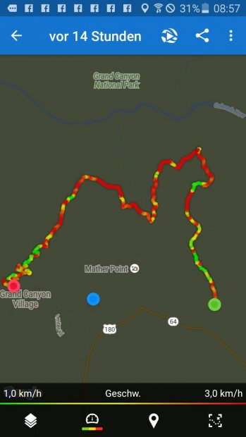 Abends vor dem Fernseher kam dann auch mein Tief – ich konnte die Augen nicht mehr aufhalten und schlief schon ganz früh ein. Die nächsten drei Tage erinnerte mich ein ordentlicher Muskelkater in den Waden an unsere tolle Wanderung in den Grand Canyon.