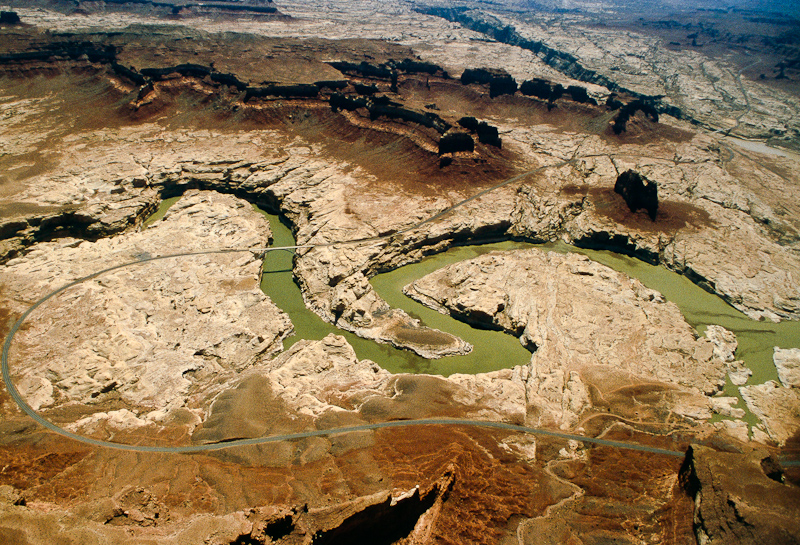 Das Photo im 2. Posting dieses Threads stammt nicht von der Great Traverse. Es ist von der Brücke der UT 95 über den Lauf des Dirty Devil Rivers flussauf geschossen. Hier ein Photo, als unter der Brücke noch das Wasser des Powell Reservoirs stand: