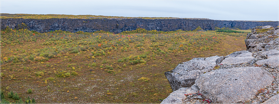 In Asbyrgi geht es auf den Felsen "Eyjan" von dem man eine Blick in die hufeisenförmige Schlucht hat