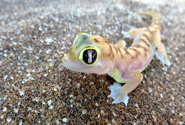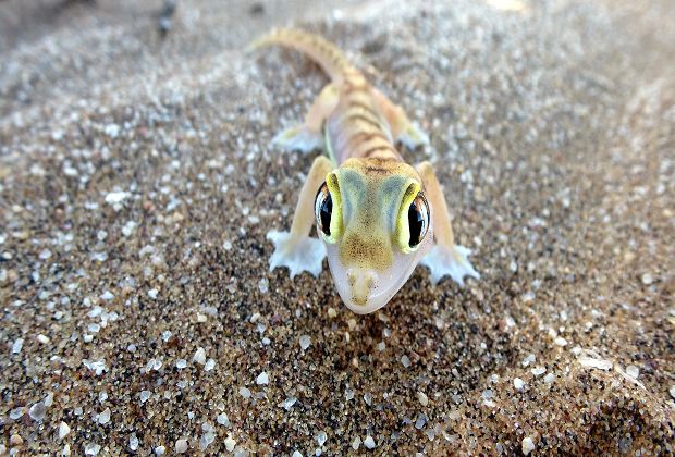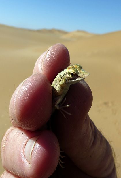 Kurz hinter der Stadtgrenze geht´s gleich in die Dünen, Steve erzählt uns einiges über die Entstehung der Namib bzw. die Tiere, die wir bald sehen werden  und plötzlich bleibt Steve abrupt stehen, hüpft aus seinem Sitz und fängt an hektisch im Sand zu graben, das Resultat ist dann das: