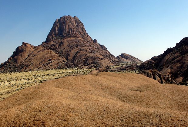 Die Teerstraße Richtung Windhoeck führt uns raus aus Swakopmund bis in die Nähe der Spitzkoppe, dort biegen wir wieder ab auf die Pad und bald kommt das markante Bergmassiv in´s Blickfeld.