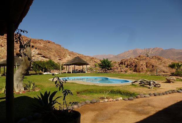 Eigentlich ist auch das Brandbergmassiv bekannt für seine Felszeichnungen, aber irgendwie haben wir heute  dafür keine Lust und verbringen den Nachmittag lieber am Pool