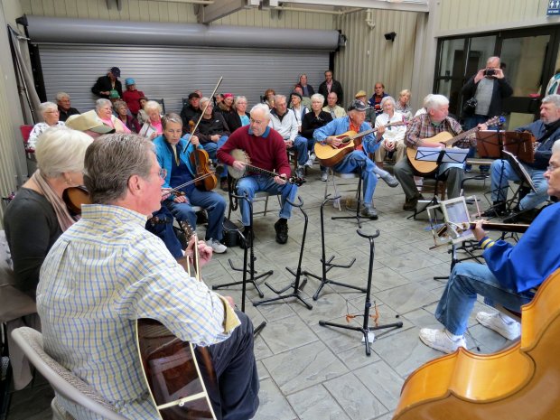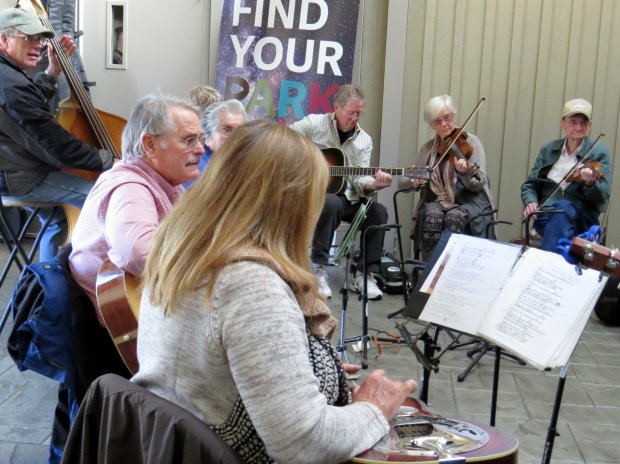 Wer gerade Lust und ein Instrument hat, kommt, setzt sich zu den anderen und spielt mit. Vor allem Volksmusik vom Blue Ridge. Diese Darbietungen sind kostenlos, nur bei Konzerten entstehen Kosten.