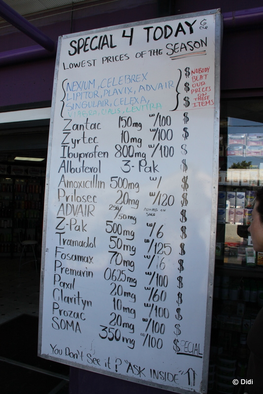 Der Ort beginnt direkt hinter dem Schlagbaum und man wird sofort mit allerlei medizinischen Angeboten konfrontiert. Sei es billige Medikamente, Zahnbehandlungen etc. alles wird hier "im Überfluss" angeboten.