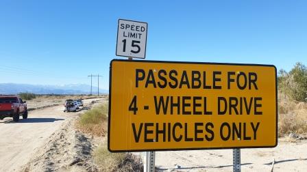 Nach ca. 14 Meilen  zweigt nach rechts die Painted Canyon Road, eine unbefestigte Straße, ab (GPS: 33.575820, -115.996125).