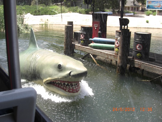Im Park sind, gehen wir zuerst ins Shrek 4D Kino und danach zur Studio Tour. Die Studio Tour ist echt klasse, zuerst werden uns ein paar Filmsets gezeigt. Die nachgebauten Straßen dort, bleiben so wie sie sind und werden teilweise für die Filme ein wenig umgebaut. Es geht dann weiter zur King Kong 4D Vorstellung, durch den „Jurassic Park“ und weiter zu einem mexikanischen Stadtteil. Danach sehen wir noch weite Filmsets wie die „Wisterialane“ von „Desperate Housewives“ oder „der Grinch“ und „Psycho“.