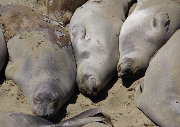 Wir hielten am Piedras Blancas Viewpoint für die Elephant Seals Kolonie und waren fasziniert, dass sich hier eine so große Kolonie niedergelassen hat. Man könnte stundenlang den Tieren zuschauen, wie sie sich mit Sand zuschaufeln, manchmal anbrüllen, manchmal aneinander drängen – leider wehte ein sehr starker Wind, fast Sturm, der uns nach einer halben Stunde wieder ins Wohnmobil trieb.