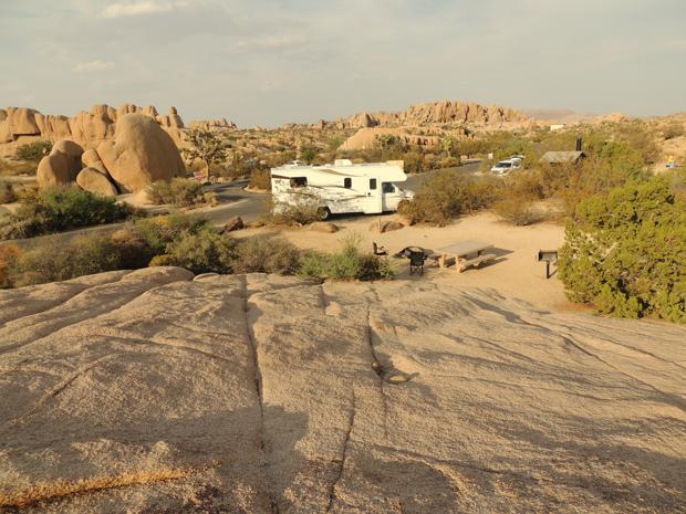 Twenty Nine -Palms erreichen wir um 17h, das Visitor Center hat schon zu, ebenso das Mauthäusl bei der Parkeinfahrt des Joshua Tree NP. Wir suchen uns eine schöne Site im Jumbo Rocks CG: Nr. 12 aus, Kosten 10$, Selbstregistrierung.