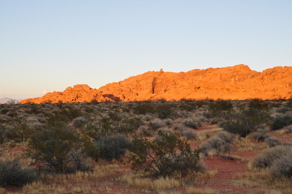 10 Minuten vor der geplanten Ankunft erreichten wir das Valley. Die Felsen färbten sich in der untergehenden Sonne blutrot, was ja dem Valley auch den Namen verdankt. Wir waren echt beeindruckt und genossen den Anblick. Der Campground befand sich inmitten der Felslandschaft, wunderschön gelegen. Unsere Befürchtungen, keinen Platz mehr zu bekommen, erwiesen sich als unbegründet. Die Temperaturen waren mit deutlich über 40 Grad einfach zu heiß als dass der normale Amerikaner zu dieser Zeit hierher fahren würde. Das machen nur die dummen Touris.