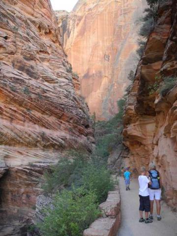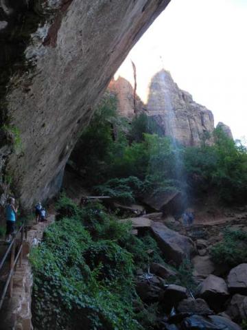 So konnten wir unsere heutige Tour erst 9:15 h starten, an der Station Weeping Rock ging es los, der Aufstieg zum Observation Point. 2 gut gefüllte Rücksäcke (es ist wirklich schwer abzuschätzen, wieviel Wasser man schlußendlich benötigt) und noch mehr Motivation. Es ging einfach nur bergauf, noch viel Schatten aber auch schon einige sehr heiße Stellen. Max (7 J.) jammerte dann mal, er schaffe es nicht, aber entgegenkommende Wanderer (es waren 6 Personen vor uns dort) versicherten ihm, daß es nur noch eine halbe Stunde zu laufen wäre.