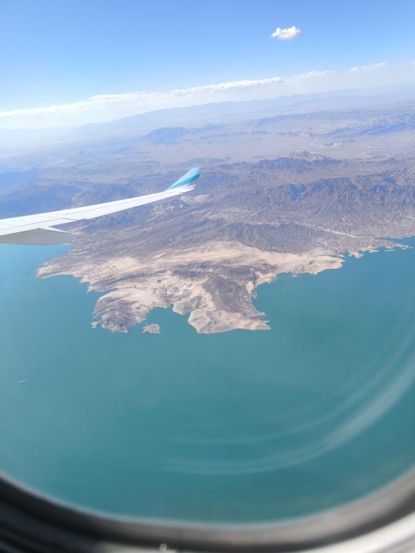 Die Sicherheitskontrolle und das Boarding liefen dann ereignislos. Bereits bei der Kontrolle der Pässe vor Betreten des Fliegers mussten wir 1-2 Fragen zur Einreise beantworten, nichts Weltbewegendes. Bei der Buchung der Flüge hatten wir einige Euronen für die Sitzplatzreservierung der 2er-Reihe auf der rechten Seite des Flugzeuges investiert. Gut angelegtes Geld, kamen wir doch entspannt – zumindest so sehr, wie man es nach einem Langstreckenflug in der Economy eben sein kann – an und hatten beim Landeanflug noch das Vergnügen, endlose Canyons und die Skyline von Las Vegas zu sehen. Das Gefühl von „nach Hause kommen“ stellte sich ein.