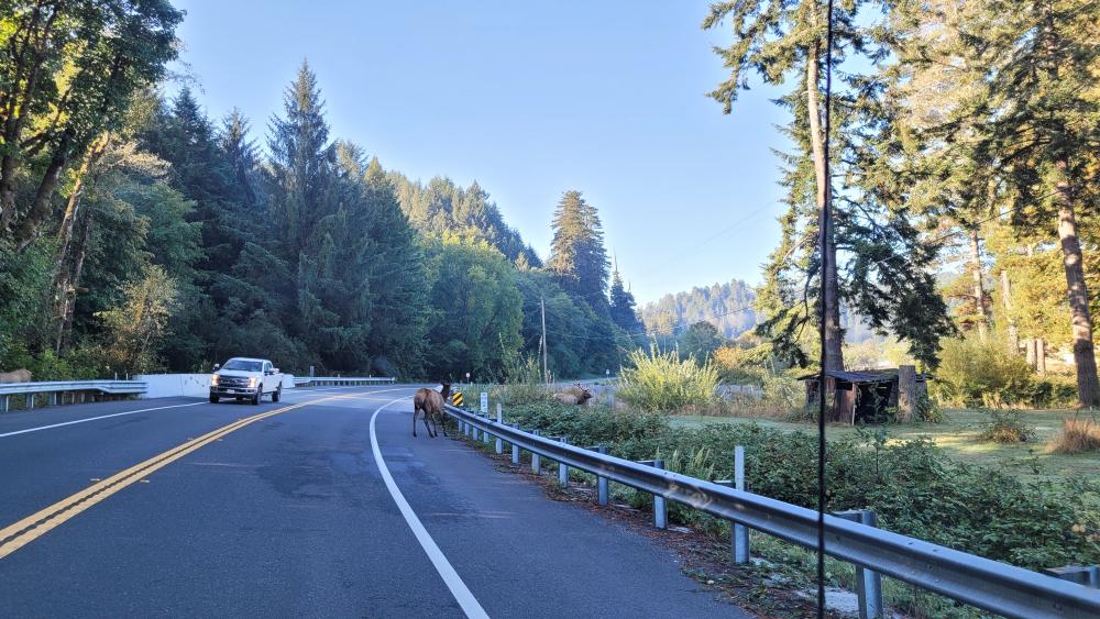 Frisch ist es auch heute in der Frühe und so stärken wir uns zunächst in aller Ruhe mit einem Frühstück, um dann entlang der Straße unsere ersten und einzigen Roosevelt Elk hier im SP zu sehen … immerhin.