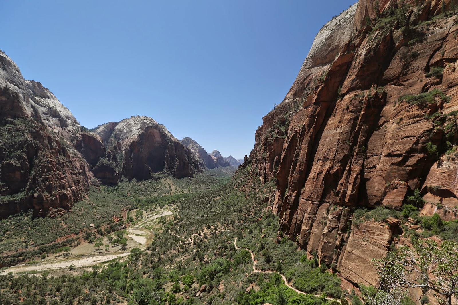 Die Wanderung war sehr schön, das Gebiet ist mit seinen steilen Felswänden sehr beeindruckend. Wir ergänzten die Wanderung mit dem Weg bis zum nächsten Bus Stop „The Grotto“. Da es nun Mittag war, nutzten wir einen der vielen schönen Picknicktischen. Uns war es aber noch nicht genug, so machten wir uns noch auf den Weg in Richtung Angels Landing – ganz hoch sind wir jedoch nicht. Bis zum Scout Lookout schafften wir es. Die Aussicht war auch schon von da herrlich.