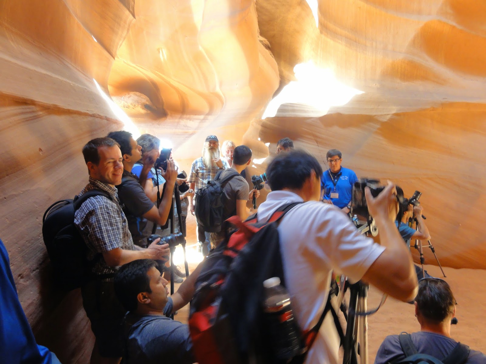 Für heute Morgen haben wir uns die Fototour im Upper Antelope Canyon gebucht. Als wir pünktlich eingetroffen sind, gab es erst mal eine paar Bürokratische „Probleme“: scheinbar wurden die Regeln geändert, sodass ein Stativ Pflicht ist. Nadia hatte sich bereits entschieden auf die Fototour zu verzichten und auf die normale Tour zu gehen.